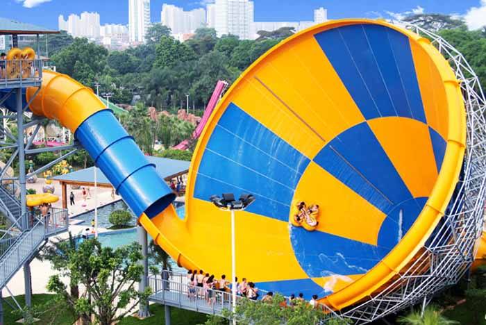 從高空出發(fā),高速穿越幾十米的螺旋滑槽后,急速下降近十米俯沖至最低點(diǎn),在驚魂未定時又垂直沖上到一個大滑坡頂端,挑戰(zhàn)地心引力的極限,再次俯沖而下安穩(wěn)地回到水池當(dāng)中,驚心動魄,徹底地體驗沖天回旋的快感帶來的合家歡樂,是水上樂園最受歡迎的設(shè)施之一。